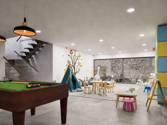 Right now, construction is at 50%: the structure, walls, pool shell, and basic installations are done. The hard work is behind us. You enter at the fun part: choosing the finishes.